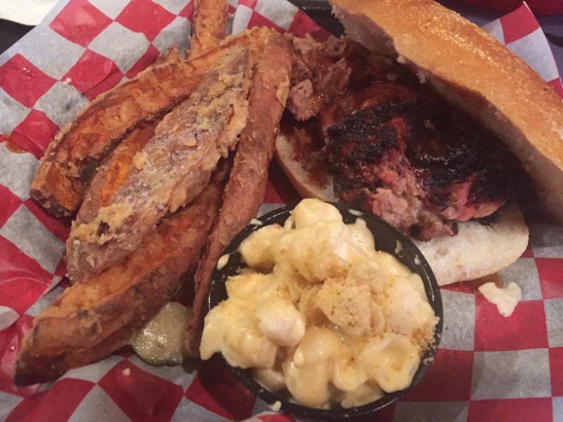 Here is a confession: We went to Jersey Shore BBQ (JSBBQ) twice in one week! :O We are preparing our taste buds for our trip out west! The first time, we took out a two meat/two sides combo of shredded chicken and burnt ends beef brisket with sweet potato fries and mac and cheese. This was $20 but enough for two people to eat! The second time, we ditched the chicken and got the beef on a sandwich. The sandwiches were buy one get one half off for their Wednesday special! This sandwich costs $9 and an additional $2 for two sides. Therefore, we spent $17-$18 before the tip. I personally love the burnt ends beef brisket so much that it doesn’t even need bread. I love to taste the smokey flavor and the spices on my tongue just the way it is. The sweet potato fries are so unique! They are about the length of a whole sweet potato and are almost like battered and fried like tempura. They are crunchy and salty. (However, they are not so good microwaved the next day when you’re trying not to eat so much for dinner.) The macaroni and cheese is definitely delicious, as well!