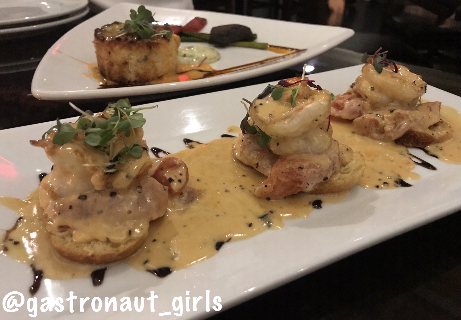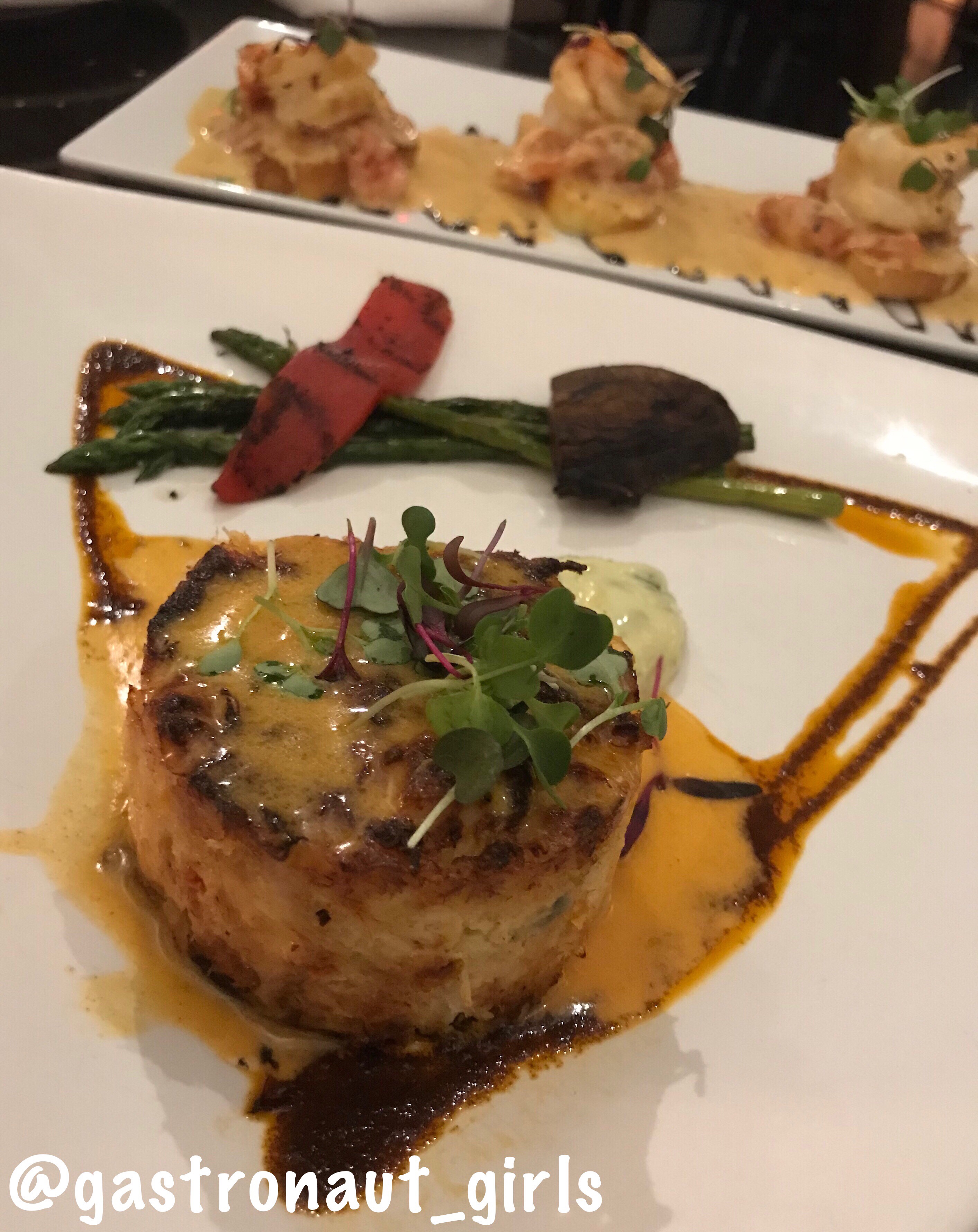 Everything on the menu sounded wonderful, but we chose the garlic shrimp, crab cake appetizer, the chicken and the NY strip steak. We were definitely impressed with the portion sizes, which gave us a second small meal the next night, as well. I could have bathed in the sauce that the shrimp were drenched in. The crab cake was huge and hearty. I appreciated the chicken on the bone. It was very tender. Our only critique would be that the chicken needed a sauce on top of it to make it a little more juicy. Lastly, the steak was to die for. It was rubbed in espresso and cooked to perfection. The mushroom risotto that the steak laid on top of was my favorite part of the whole meal. The texture and the flavor were there and it complemented the meat perfectly.