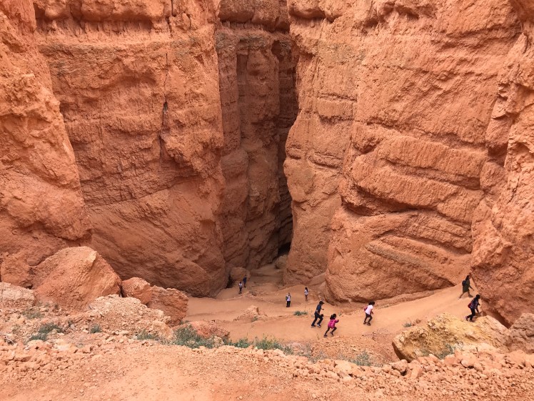 From our first few feet of the descent, I couldn’t help just continuously stopping and staring at my surroundings. The rocks, dips and drops are all made up of different hoodoo formations. Hoodoos are bits of hard and soft rock that are formed in vertical patterns from weathering.