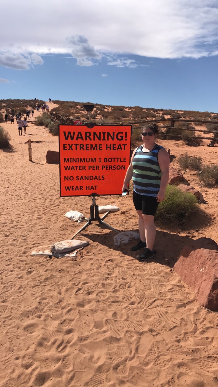 Horseshoe Bend was both incredible and terrifying. The walk to the site is about 3/4 of a mile each way and there are signs plastered all over enforcing each person to bring at least one water bottle. The sun is so strong in the middle of the day and this path is just an open field with 100% sun access, so keep that in mind when you visit.