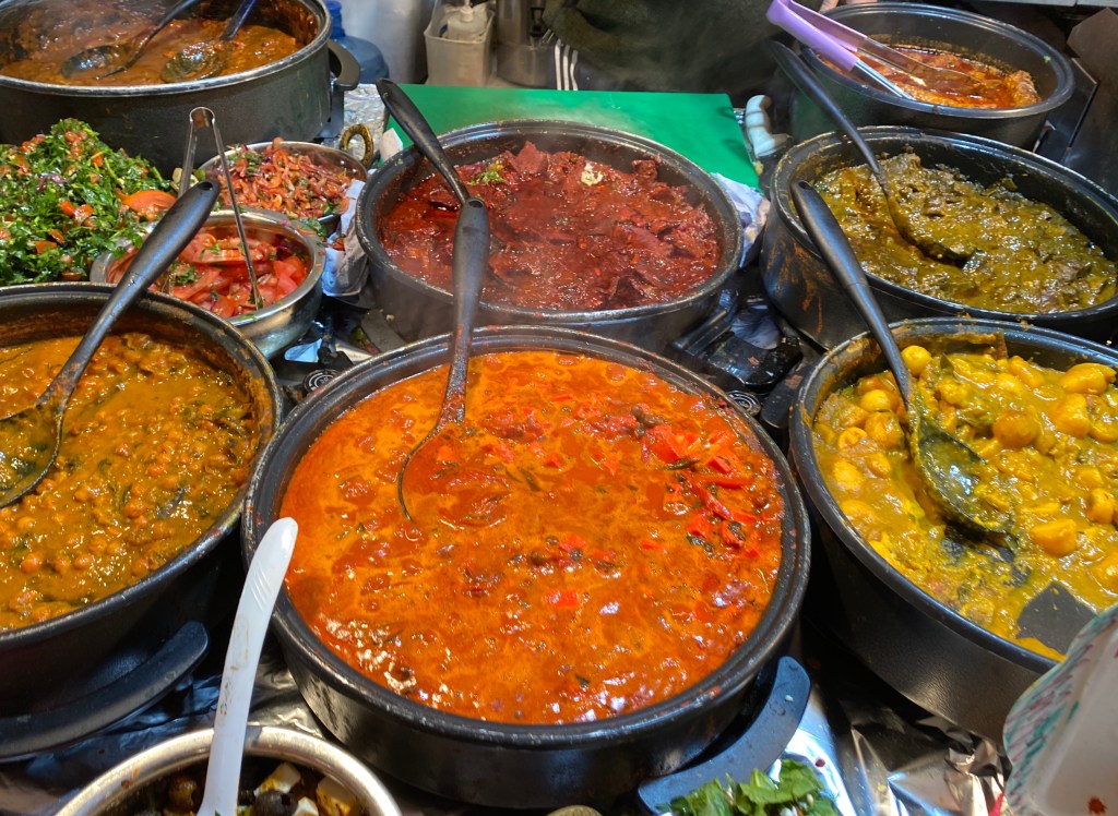 We arrived in London, on December 23rd, hungry for both food and adventure. It was midday, and exhaustion was expected. It gets more difficult to sleep on red eyes the older we get. I had mapped out a tentative half-day itinerary- to eat our way through the Spitalfields, Brick Lane and Shore Ditch. Brick Lane, also called “curry lane” is known for its markets and Indian food- a Gastronaut Girls’ dream. We found Uptown Market by accident, and we were so happy we did. This skeleton of an old brewery is now a congested market with food and art booths. Our senses were overwhelmed. The first thing that had to be eaten was Indian Turkish cuisine. There were woks filled with brightly colored dishes and we told them we’d take one paratha packed with everything. We didn’t necessarily know what we were putting in our mouths, but we thoroughly enjoyed every bite.