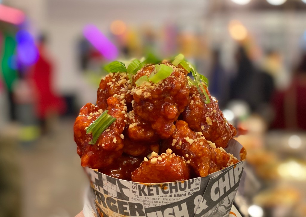 At a nearby stand, we tried something that resembled a cone of General Tsos chicken.
