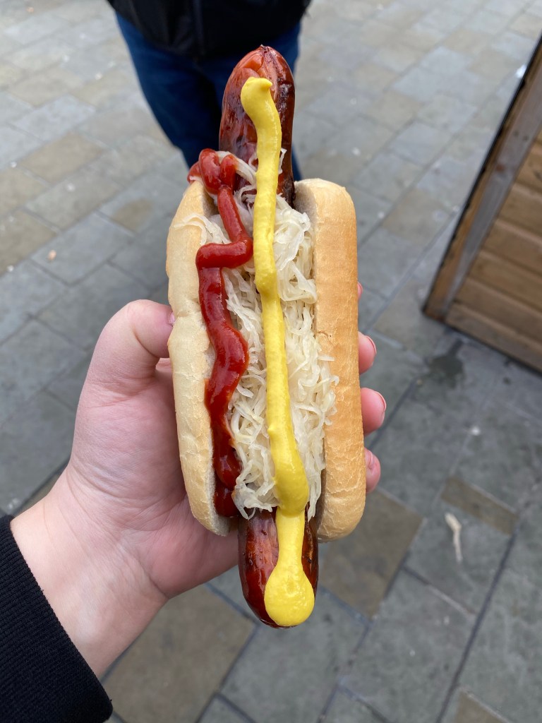 Halfway into the tour, we went to a Christmas market for a snack, where we shared a bratwurst and churros. The holiday markets make traveling in December such a treat. There’s just such a feeling of warmth that overcomes you as you browse the food stalls and souvenir shops. You can’t help but feel the holiday cheer (and this is coming from a Jewish girl).