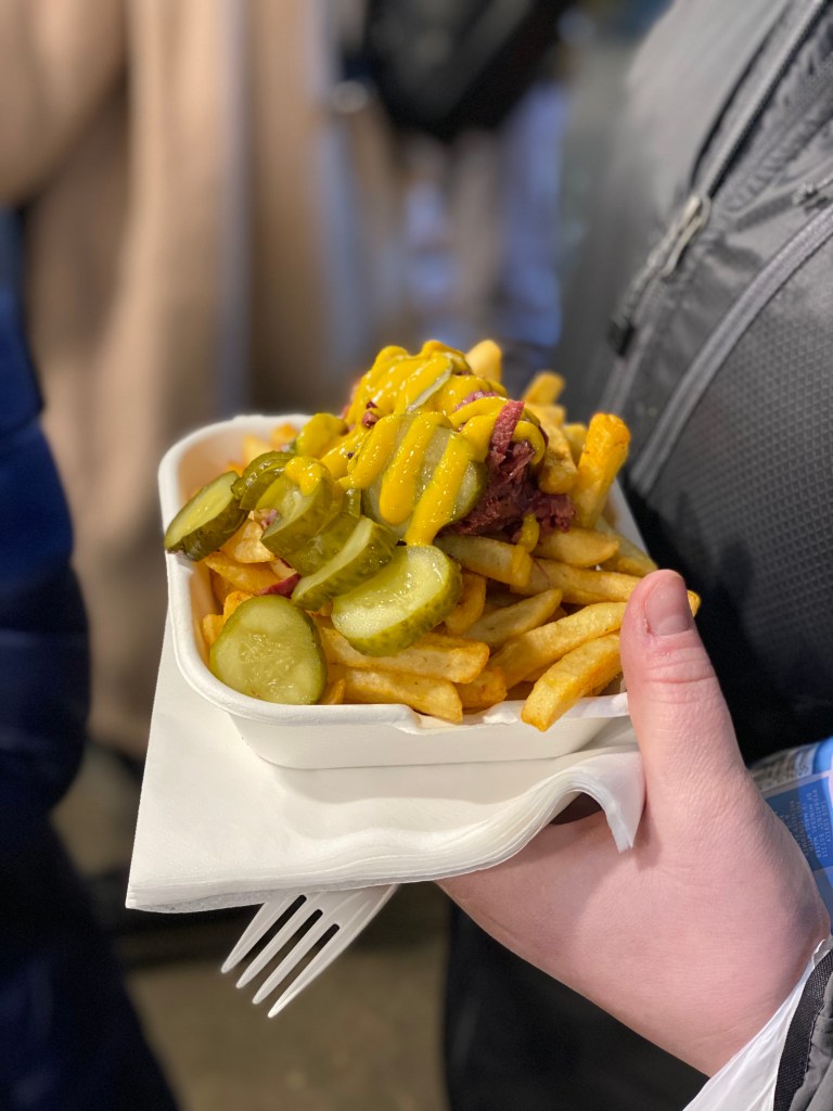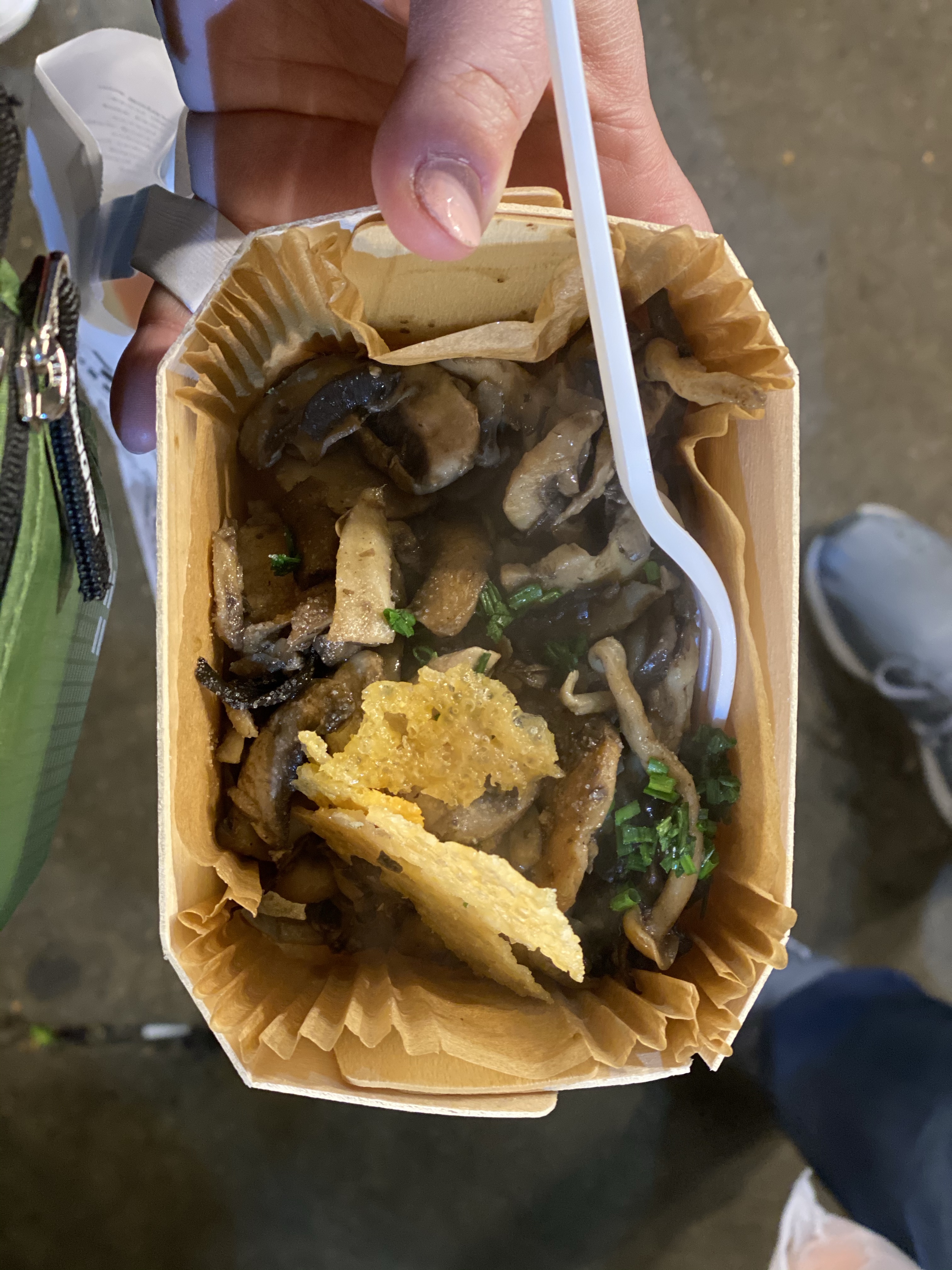 After the tour, we went to the well known Borough Market. Steph had been there before on her previous trip to the UK, and she knew what to expect. However, Nat and I didn’t know how incredible it would be! From fruit to cheese to prepared meals, we wanted it all! We settled for salted beef chips and truffle mushroom pasta. Steph also got a tea.