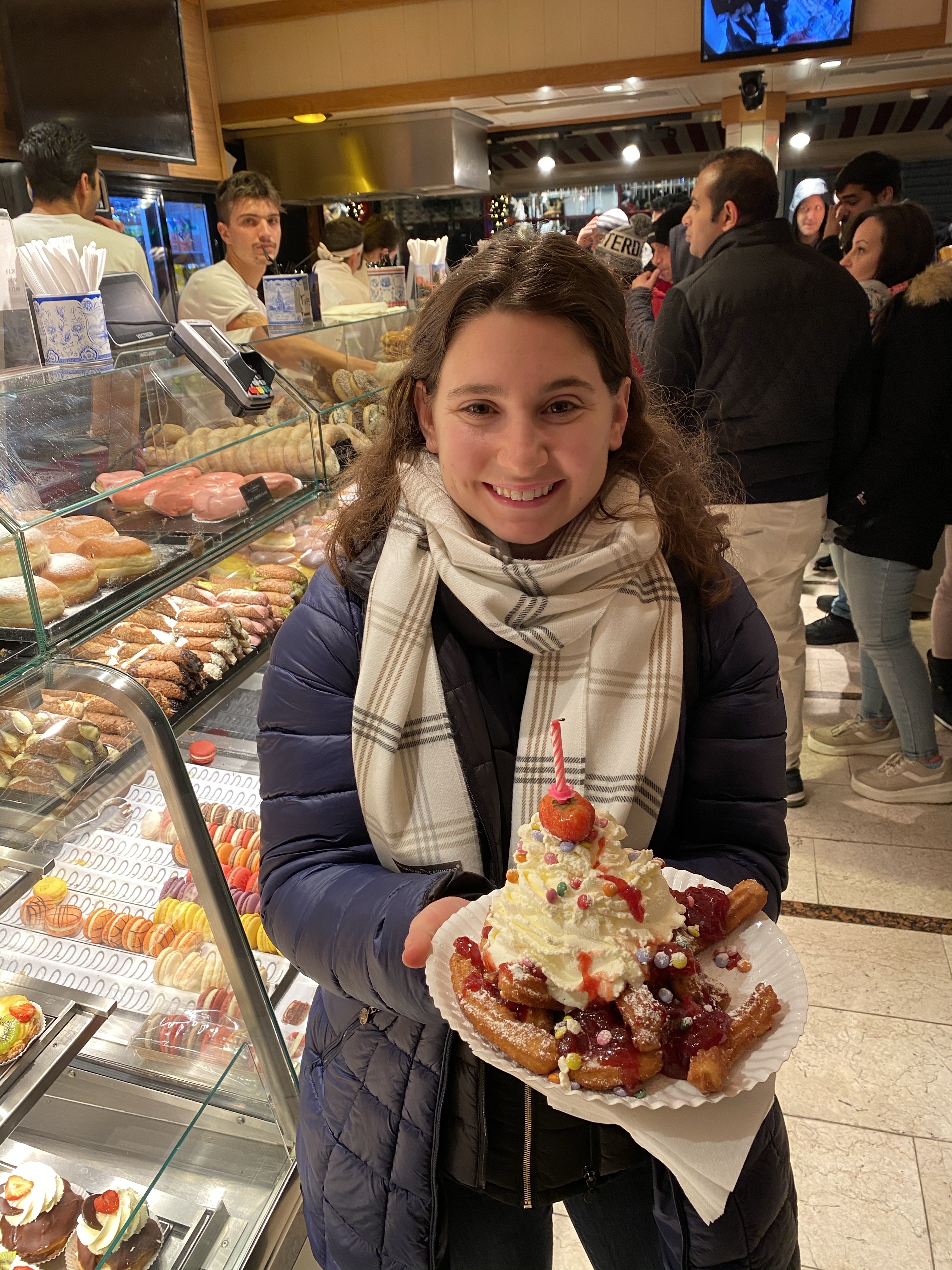 It was the night before Steph’s birthday and when we stopped for dessert, they sang to her with a churro cake that they created on a whim.