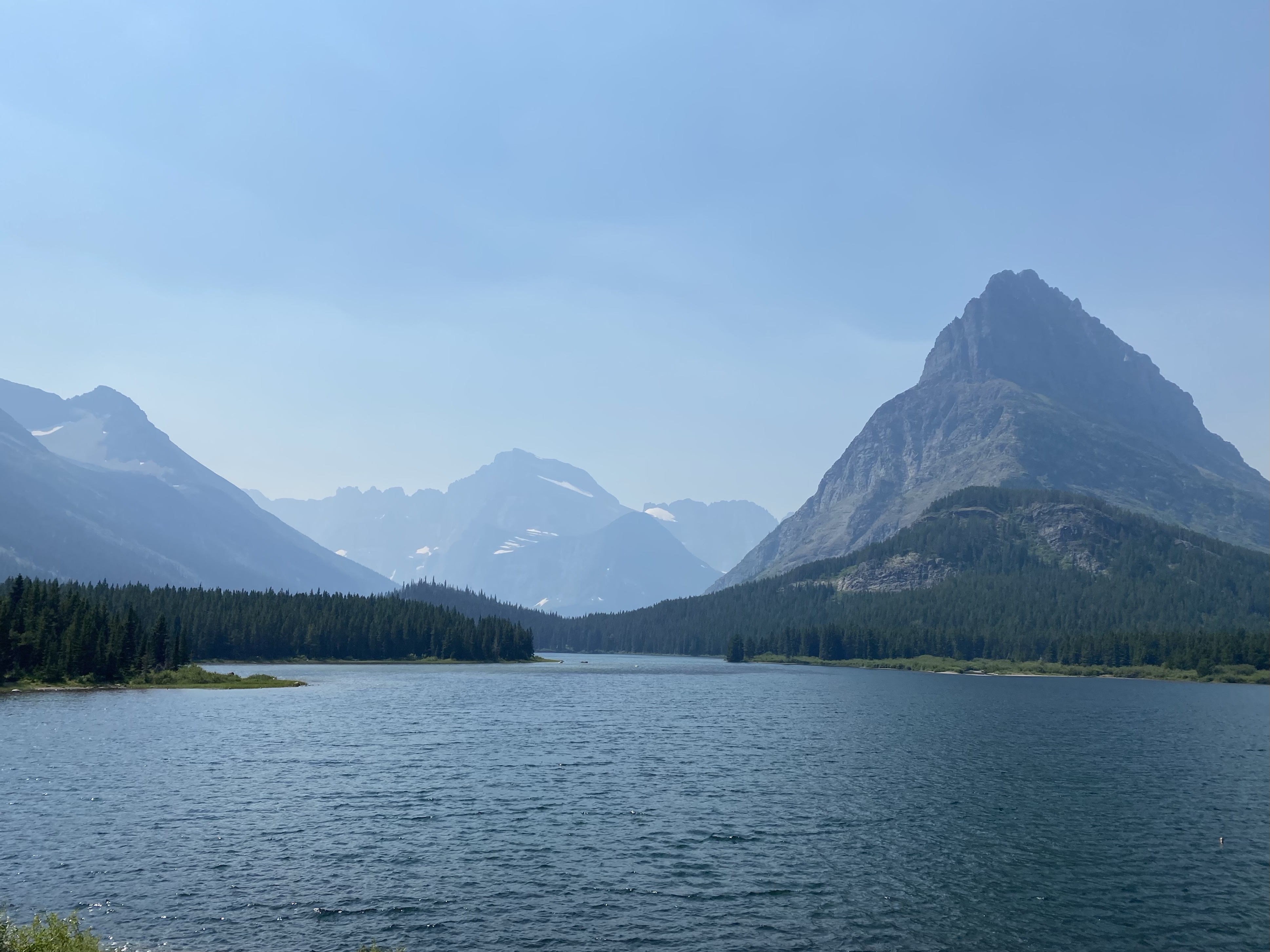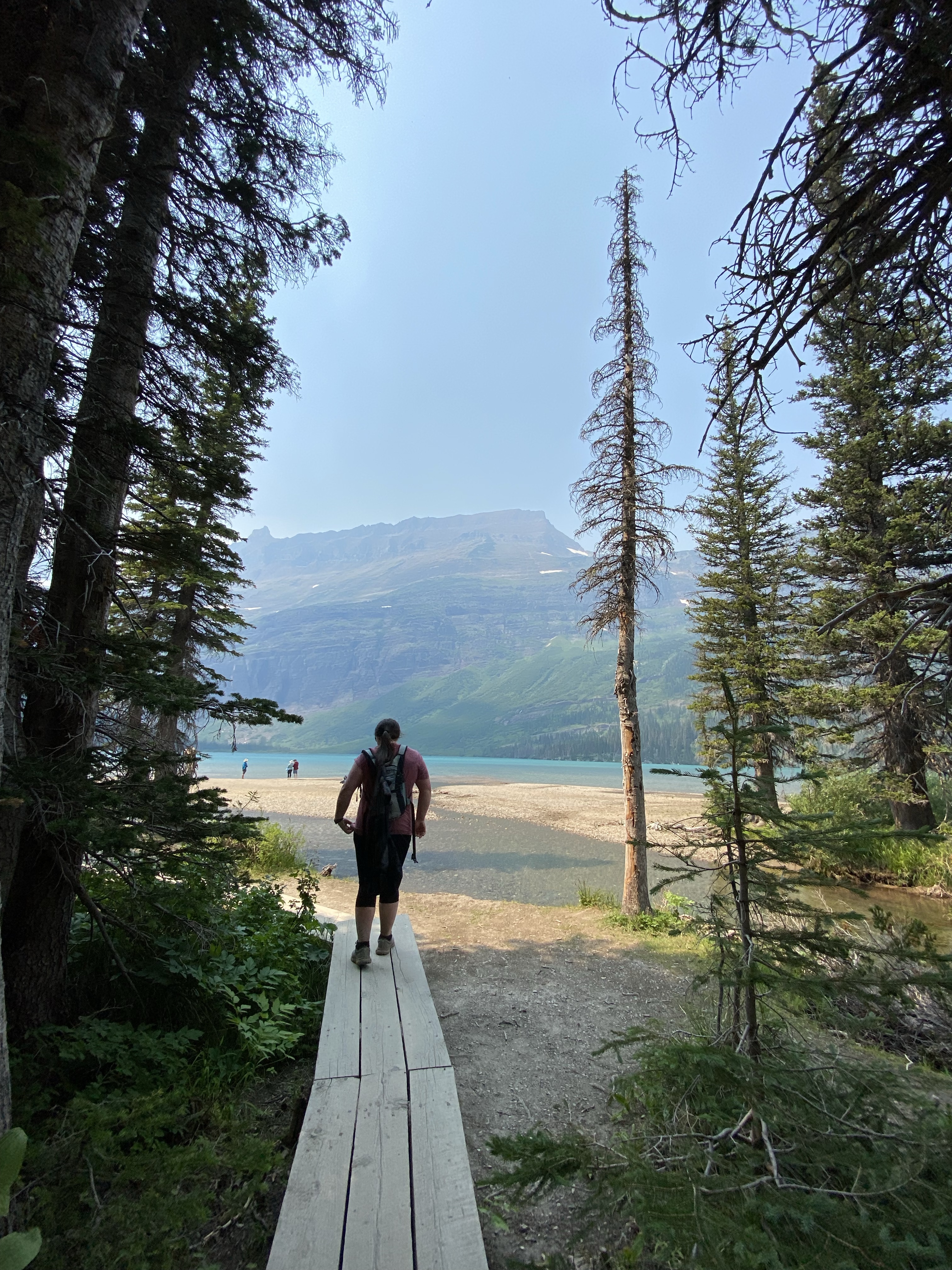 The next morning, we stopped at an unnamed coffee stand near the park entrance only for some espresso, yet got persuaded into buying a breakfast burrito and a homemade cinnamon bun. Being from NJ, we’re used to going through life at such a fast pace. In these small western towns, no one is in a rush to go anywhere. The owner of the stand talked to us for about twenty minutes as she prepared our food one step at a time. The one thing from the conversation we should have listened to was her recommendation of driving the park in each direction. We thought she was just biased and wanted us to stay in her hometown, rather than the touristy one on the other side of the park, but later on we realized that wasn’t the case. The drive through the East side of the park towards Going-To-The-Sun-Road (West side) was unbelievable and it really would have been cool to see the reverse direction. Unfortunately, our timeline didn’t allow for another night in this area, but next time we will drive the other way. The road hugged the cliff on the passenger side for miles and miles; dipping in and out of mountains and winding around hairpin turns. We stopped at various overlooks, explored unpopular pull offs with streams on foot, and we hiked John’s Lake trailhead, an unassuming 2 miler. Before we left the park, we checked out Apgar Village and put our feet in Lake McDonald. People kayak and swim there, but the layer of smoke from the wildfires was a turnoff.