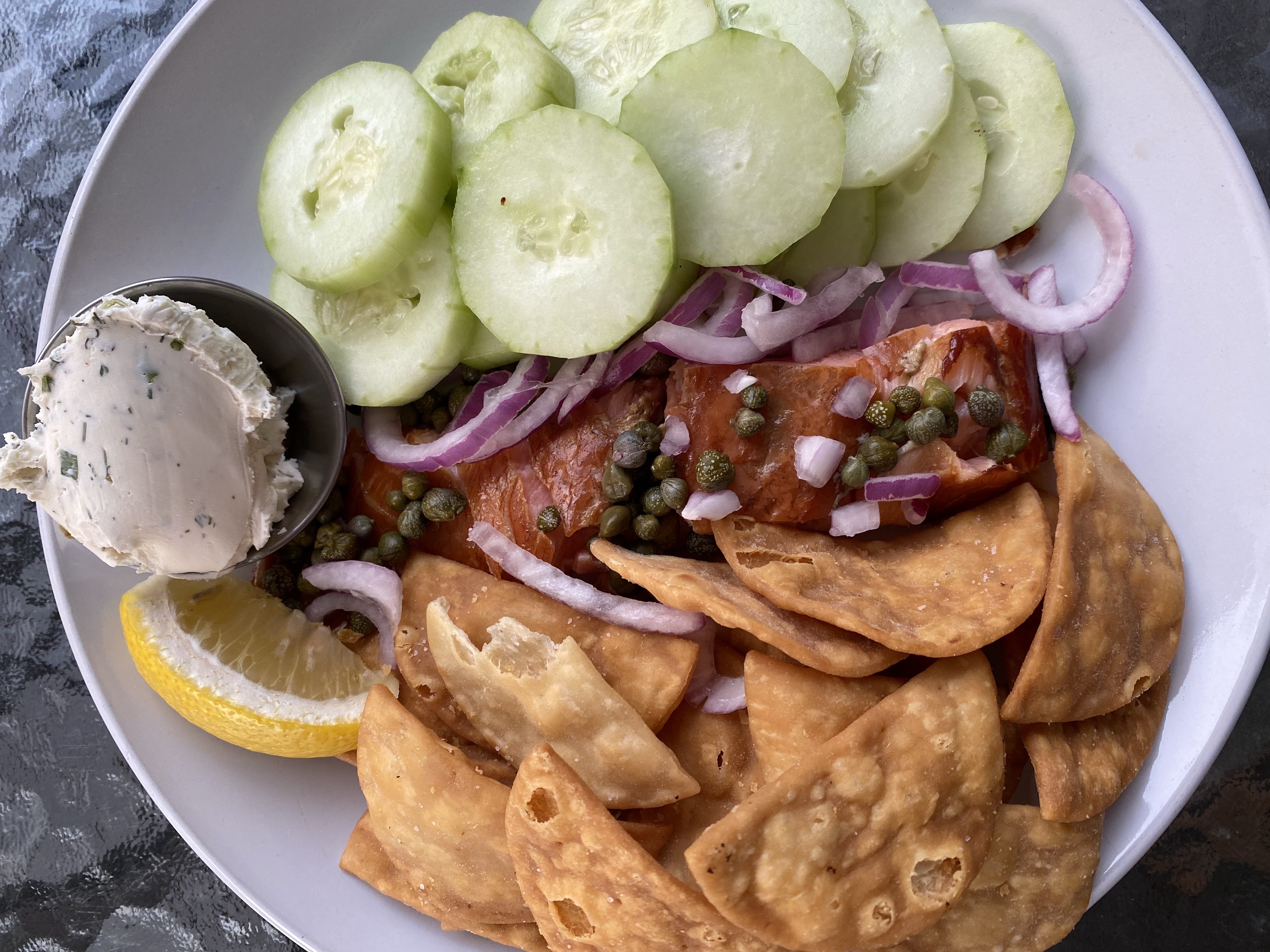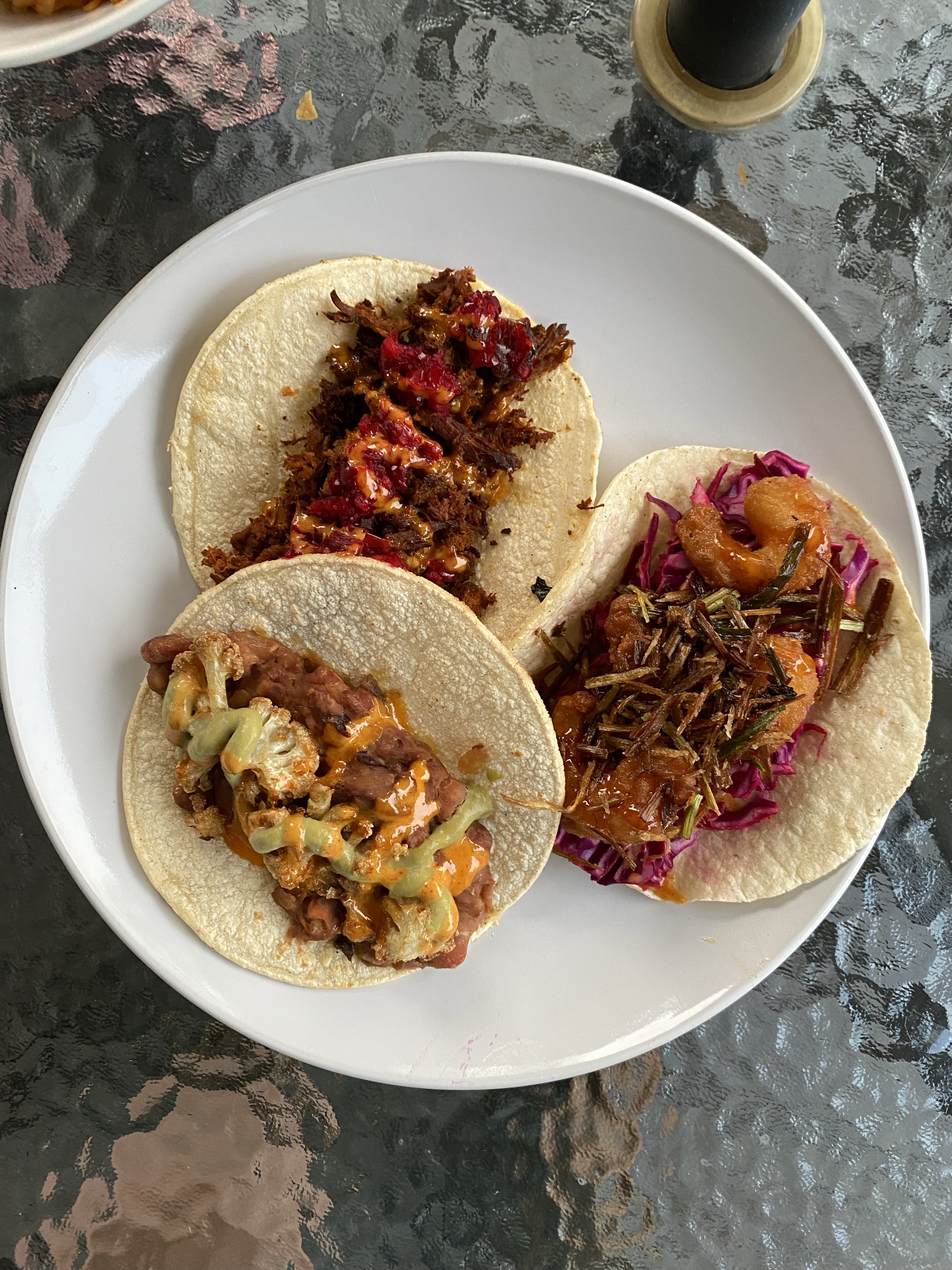 We spent the night in Salmon, Idaho, the smallest redneck, town endorsing “Fuck Joe Biden” on lawn decorations. Of the two restaurants to choose from, we picked Last Wave, simply because the referred place had a long wait. The owner happened to be our server so we learned that the restaurant was pretty new, and that their chef is from Thailand. Naturally, the menu featured American and Thai cuisine and we were happy to report that everything we ate was flavorful and really well priced. Pictured are the smoked salmon appetizer (we were IN Salmon after all), the pad Thai and the mixed tacos.
