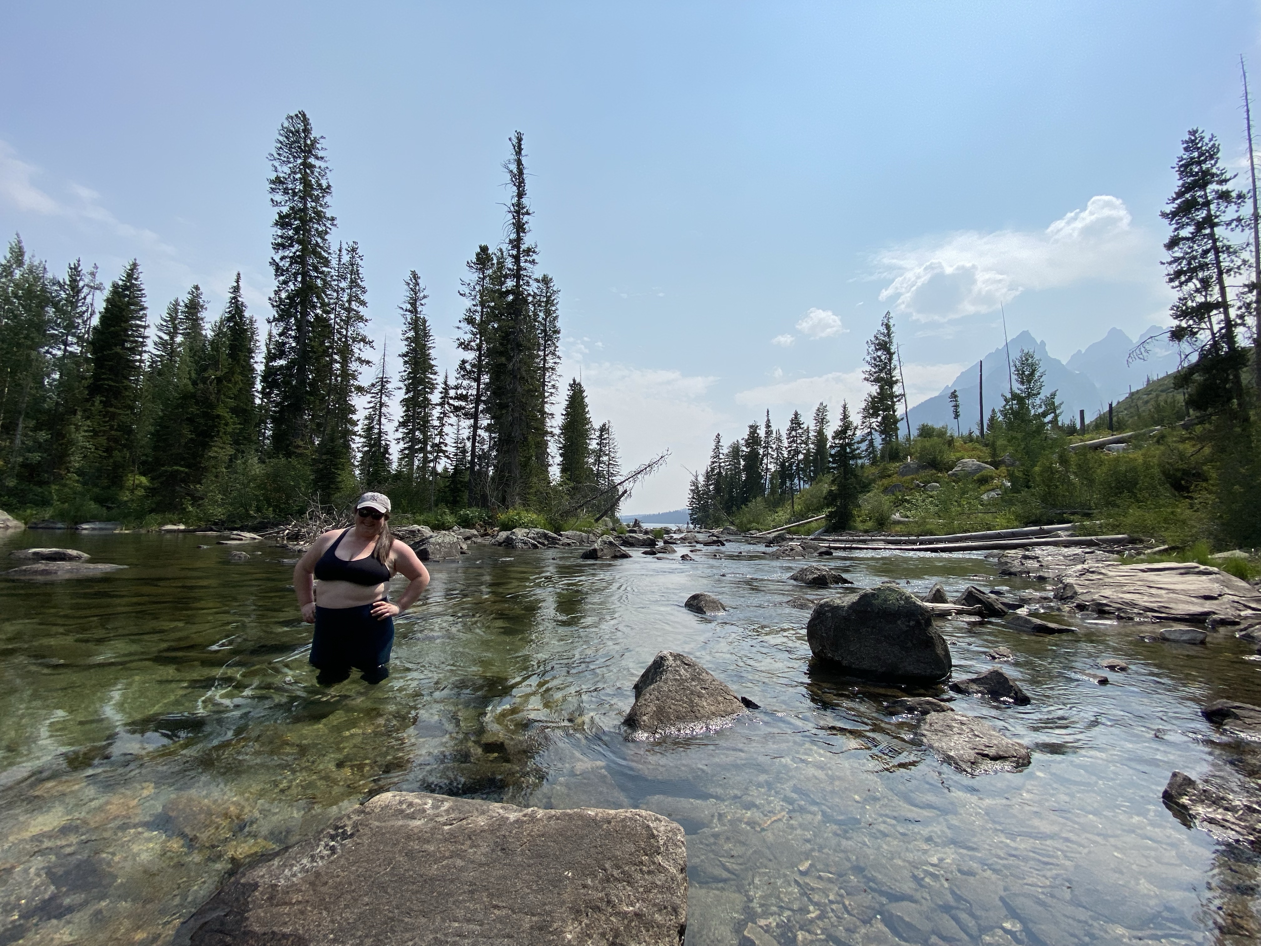 In the park, we walked the Jenny Lake Loop Trail, to Hidden Falls waterfall, and ascended to Inspiration Point, for a whopping total of 9.5 miles. The views were incredible; from the height of the waterfall to the panoramic view of the Tetons, to the private-ish lake that we dipped in, even to the horses and their large BMs! The hike was very long, and totally out of our comfort zone but following the Tetons made it rewarding. Most of the way, we had the trail to ourselves and passed people here and there. There were boat ride options at this park too, but with boats come tourists. Nat says we’re more like travelers, than tourists. I’d like to believe that. At the end of this hike, I felt like I had accomplished something huge.